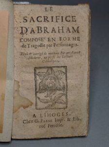 IMPRESSION POPULAIRE. - Le Sacrifice d'Abraham composé en forme de Tragédie par Personnages. …