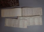 MANUSCRIT. - Calendrier perpétuel. S.d. [vers 1801 ?]. CURIEUX CALENDRIER MANUSCRIT, copié à l'encre brune et rouge, constitué au total de 113 feuilles de format in-12 oblong très allongé avec des encadrements pré-imprimés. La division se fait ainsi : 2 feuilles pour le tableau indicateur (de 1801 à 1950), 105 feuilles pour le calendrier, 3 feuilles pour le calendrier lunaire, et 3 feuilles pour le tableau chronologique des éclipses (de 1801 à 1857). Quelques rousseurs claires et taches.