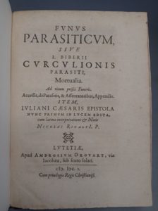 RIGAULT (Nicolas). Funus parasiticum, sive L. Biberii Curculionis parasiti, Mortualia. Paris, …