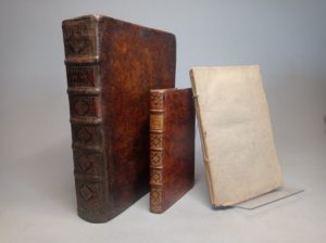 SCIENCES. - Ensemble 3 ouvrages. - GOUBERT. Description et usage des baromètres, thermomètres et autres instrumens météorologiques. Dijon, Capel, et se vend à Paris, Alexandre Jombert, 1785. In-8, broché. Seconde édition, après l'originale de 1781, revue et considérablement augmentée, accompagnée de 3 tableaux dépliants à la fin. - ROHAULT (Jacques). Traité de physique. Paris, Veuve Charles Savreux, 1671. 2 tomes en un volume in-4, veau brun, dos orné (Reliure de l'époque). Édition originale, ornée de 2 figures repliées. Ex-libris manuscrits anciens, dont deux biffés sur le titre. Mouillure claire au début et à la fin du volume. Reliure très restaurée (charnières, coins, coiffes et mors). - COURS de chymie de Montpellier. Par J. A. G. D. M. S.l.n.n., 1749. In-12, basane marbrée de l'époque.