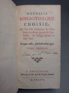 [SIMON (Richard) et Nicolas BARAT]. Nouvelle bibliothèque choisie, Où l'on fait connoître les …