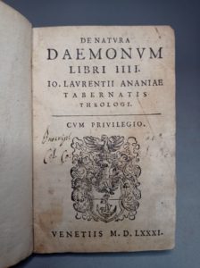 ANANIA (Giovanni Lorenzo). De natura daemonum Libri IIII. Venise, s.n. [Alde le jeune], 1581. …
