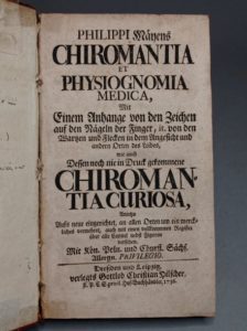 MAY (Philippe). Chiromantia et physiognomia medica. Dresde et Leipzig, Hilscher, 1736. In-8, …