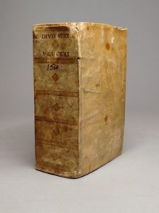 PEUCER (Caspard). Commentarius de praecipuis generibus divinationum... Wittemberg, Johannes Schwertel, s.d. [1576]. Fort volume in-8, vélin à recouvrement, cartouche à motif d'entrelacs doré au centre, dos lisse orné, titre à l'encre, tranches dorées (Reliure de l'époque). Rare édition du principal ouvrage de Caspard Peucer (1525-1602), érudit et humaniste allemand qui était le gendre de Melanchthon. L'originale avait paru en 1553. Elle est ornée d'un tableau dépliant récapitulatif des chapitres. Dans ses Commentarius, l'auteur traite non seulement des divers genres de divination, mais parle aussi de magie, des oracles, des augures, des auspices, des sorts, de la théomancie, des songes, des présages médicaux, de la météorologie, de la chiromancie, de l'astrologie ou encre de la tératoscopie. PLAISANT EXEMPLAIRE, REGLE, CONSERVE DANS SON VELIN DORE DE L'EPOQUE, un peu effacé. Il est complet de l'avant-dernier feuillet qui contient l'achevé d'imprimer et la marque typographique. Quelques rousseurs, petite mouillure angulaire ou marginale au début et à la fin du volume, petite déchirure sans perte de texte à l'angle inférieur d'un feuillet de table.