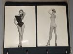 BARDOT (Brigitte). Ensemble environ 160 photographies de l'actrice, montées sur des feuillets de papier noir dans un classeur in-4 simili-cuir moderne. SUPERBE ALBUM CONTENANT ENVIRON 150 PHOTOGRAPHIES ORIGINALES DE BRIGITTE BARDOT, divers formats, dont 33 photographies de films, 64 photographies de presse et 26 personnelles ; 13 photographies portent une dédicace autographe de l'actrice. On y trouve également UN PORTRAIT AU CRAYON DE BRIGITTE BARDOT, à l'âge de 23 ans et les cheveux courts, daté 1957 et signé H. Zwi.