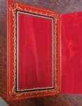 FRANCE (Anatole). Les Dieux ont soif. Paris, Calmann-Lévy, s.d. [1912]. In-12, maroquin rouge, janséniste, cadre intérieur orné de chaînettes et de fers dorés accompagnés aux angles de bonnets phrygiens mosaïqués, le tout souligné de deux listels de maroquin bleu et blanc, doublure et gardes de moire rouge, tranches dorées sur témoins, couverture et dos, étui (Ch. Septier). Édition originale. Un des 200 exemplaires sur hollande. LETTRE AUTOGRAPHE D'ANATOLE FRANCE (2 pages à en-tête gravé du Château Caillavet), datée du 18 novembre 1907, montée en tête : il recommande Grégoire Bay très chaudement pour la Légion d'honneur. Parfait exemplaire.