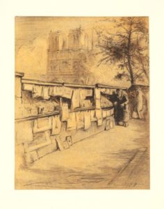 HUYSMANS (Joris-Karl). À Vau-l'eau. Paris, Georges Courville, s.d. [1933]. In-4, maroquin fauve, janséniste, dentelle intérieure, doublure et gardes de moire verte, tête dorée, non rogné, couverture, étui (Nativet). Première édition illustrée, ornée de 19 eaux-fortes et pointes sèches de Edgar Chahine. Tirage à 215 exemplaires, celui-ci nominatif pour l'artiste. Fente restaurée sur le second plat de la couverture.