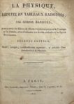 BARRUEL (Étienne) — La Physique, réduite en tableaux raisonnés. Seconde édition revue, corrigée, considérablement augmentée et précédée d’une Introduction à la physique.