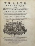 L’HOSPITAL (Marquis Guillaume de St.-Mesme, Comte d’Entremont de) — Traité analytique des sections coniques et de leur usage pour la résolution des équations dans les problèmes tant déterminez qu’indéterminez.