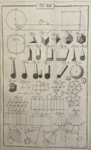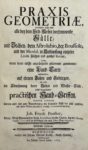 C’est la 7e édition de cet important traité de géométrie appliquée qui avait paru pour la première fois à Augsbourg en 1732. Le mathématicien allemand J. F. Penther (Furstenwalde 1693 - Göttingen 1749) fut longtemps au service du comte Stolberg. Il enseigna à l’université de Göttingen. Sa Praxis geometriae est un des plus importants traités en langue allemande sur l’arpentage, les mesures géographiques, la cartographie, l’usage des instruments. Le frontispice a été dessiné par Penther, ainsi que la grande vignette du titre de la 2e partie.
