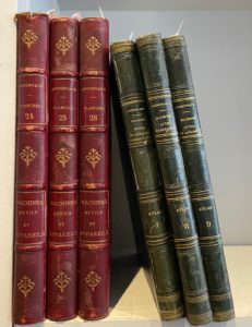 Paris, 1843-1888. 31 vol. grand in-8 de texte : vol. 1-17 en demi-chagrin vert orné de l’époque, vol. 19-26 en demi-chagrin rouge, volumes 18, et 27-30 en demi-bas. noire de l’époque, vol. 31 en demi-chagrin vert, dos insolé. Série composite mais complète des publications d’Armengaud aîné (qui sera poursuivie par son fils avec 1 vol. supplémentaire).