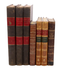 - EXPOSITION UNIVERSELLE Internationale de 1878. Paris, Impr. Nat., 1880-81 ; Rapports Groupe IV, classe 41, Objets de Voyage ; classe 42, Bimbeloterie ; Groupe V, classe 43, Produits de l’exploitation des mines... 3 rapports en 1 volume in-8, demi-chagrin de l’époque.