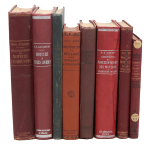 - CAVALIERI (G. L.) Moteurs hot bulb et semi-diesel. Paris, Liège, Béranger, 1925 ; grand in-8, cartonnage d’éditeur avec le titre “Moteurs à huiles lourdes à compression modérée” sur le dos et le plat. 463 figures in-texte.