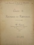- CAQUOT. Cours de résistance des matériaux. Paris, École des Ponts et Ch., 1941 ; in-4, demi-toile imit. chagrin. Cours polycopié, illustrations et notes d’élève.