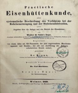 SAINT-ANGE (Walter de) — Practische Eisenhüttenkunde, oder systematische Beschreibung des Verfahrens bei der Roheisenerzeugung und der Stabeisenfabrication, nebst Angaben über die Anlage und den Betrieb der Eisenhütten.