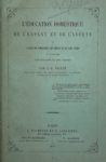 - L’éducation domestique de l’enfant et de l’adulte ou l’art de corriger les défauts et les vices et d’exciter les qualités et les vertus. Paris, Hachette, 1858 ; in-8, demi-basane fauve moderne, couv.