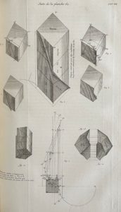 ÉDITION ORIGINALE 67 + 6 planches gravées, certaines recto-verso, d’autres dépliantes, d’autres doubles. Le frontispice, détaché, est daté 1738 (provenant de la réédition donnée par P. A. Martin en 1738). L’ouvrage est en 5 parties (portes et arrrières-voussures, maîtresses voûtes, trompes, descentes et abat-jours, escaliers). À la fin on trouve le Petit traité de stéréotomie appliquée à l’usage de la coupe des pierres avec 6 planches.