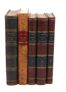 - IVON-VILLARCEAU. Équations de l’équilibre d’un corps solide déduite du principe des vitesses virtuelles. Paris, Revue Gén. de l’architecture et des Travaux Publics, 1844. Suivi de, du même auteur : Équilibre des voûtes en berceaux cylindriques. Id., ibid., 1845, en 2 parties formant les parties 2 et 3 de ce triptyque. Suivi de quelques extraits d’articles du même. Grand in-8, demi-basane moderne.