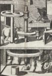 ÉDITION ORIGINALE parue simultanément en allemand et en français. 2 beaux titres illustrés par Matthias Merian, les planches de mécanismes de moulins ont été gravées par Balthasar Schwan et Eberhard Kiefer d’après les dessins de Jacopo Strada (Mantoue 1507 - Prague 1588), humaniste, peintre, architecte et inventeur de machines, il était l’oncle de l’auteur.
