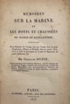 DUPIN (Charles) — Mémoires sur la marine et les ponts et chaussées de France et d'Angleterre : contenant deux relations de voyages faits par l'auteur dans les ports d'Angleterre, d'Écosse et d'Irlande, dans les années 1816, 1817 et 1818; la description de la jetée de Plymouth, du canal Calédonien, etc.
