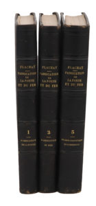 Le premier tome concerne la fabrication de la fonte, le deuxième celle du fer et le dernier, l’examen statistique et commercial. Rousseurs. L’atlas : titre sur double page, table sur double page et 92 planches, dont 6 dépliantes, les autres sur double page.