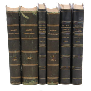 15 volumes in-8, demi-basane (Reliure de l'époque).Revue composée d’un annuaire et un bulletin technologique. Nombreuses planches dépl. et nombreux articles intéressants.