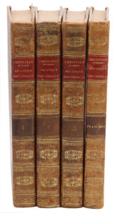 Paris, Bachelier, 1822-25. 3 vol. de texte et 1 vol d’atlas, ensemble 4 vol. in-4, veau granit, encadr. guirl. dor., dos ornés (Reliure de l'époque).2 ff., VII pp., 496 pp., 2 planches dépl; - 3 ff., 503 pp., 2 planches dépl. - 3 ff., 482 pp. - Atlas : 2 ff., 60 planches dessinées et gravées sur double page.