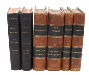 ÉCOLE CENTRALE DES ARTS ET MANUFACTURES — Cours manuscrits. 7 volumes in-8 et 1 in-folio, cours manuscrits, nombreux dessins, ou gravures d’illustration montées dans les volumes.