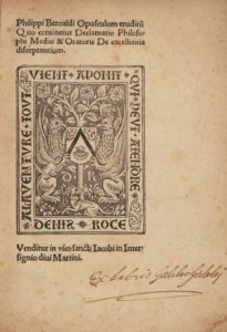 BÉROALDE (Philippe). Opusculum eruditum Quo continetur Declamatio Philosophi, Medici & Oratoris …