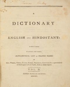 HARRIS (Henry). A Dictionary English and Hindostany : to which is annexed a copious and useful …