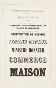 IMPRIMERIE. — Spécimen de la fonderie de caractères de Lazare Olive. Marseille, Veuve Marius …