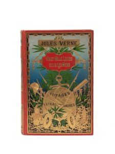 Vingt mille lieues sous les mers par Jules Verne. Illustrations par de Neuville et Riou. Paris, Bibliothèque d'Éducation et de Récréation, J. Hetzel et Cie, sd (ca 1903). Grand in-8° double. Cartonnage éditeur polychrome «au globe doré» du 4e type. Engel Relieur. Tranches dorées. Gardes bleu. Six planches hors-texte en couleurs. Imprimerie Belin. Très bel exemplaire aux ors éclatants !