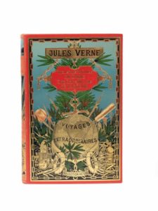 Les Tribulations d'un Chinois en Chine / Les Cinq cents millions de la Begum par Jules Verne. Illustrations de Benett. Paris, Bibliothèque d'Éducation et de Récréation, J. Hetzel et Cie, sd (1897). Grand in-8° double. Cartonnage éditeur polychrome «au globe doré» du 2e type (à l'empiècement). Engel relieur. Tranches dorées. Gardes anthracite. Catalogue «O» pour 1896-1897. Imprimerie Gauthier-Villars. Dos un peu passé. Sinon, magnifique exemplaire de titre toujours rare en cartonnage polychrome.