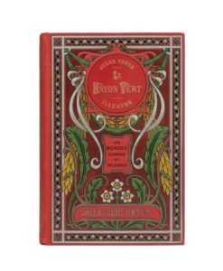 Le Rayon vert par Jules Verne. Illustrations de Benett. Paris, Collection Hetzel, sd (ca 1905). Grand in-8° simple, cartonnage polychrome «aux feuilles d'acanthe». Charles Magnier Relieur. Tranches dorées. Gardes bleu. Trois planches hors-texte en une couleur. Imprimerie Belin. Première apparition des hors-textes en couleur qui ne figuraient pas encore dans le cartonnage «au steamer». Superbe exemplaire !