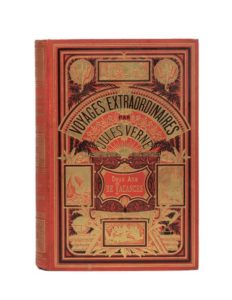 Deux ans de Vacances par Jules Verne. Illustrations de L. Benett. Paris, Bibliothèque d'Éducation et de Récréation, J. Hetzel et Cie, sd (1888). Grand in-8° double. Cartonnage en pleine percaline rouge «aux deux éléphants». 2e plat de type «d» Lenègre. Lenègre Relieur. Tranches dorées. Gardes bleu. Catalogue «EL» pour 1888-1889. Imprimerie Gauthier-Villars. Édition originale illustrée et premier cartonnage. Dos à peine insolé. Très bel exemplaire.