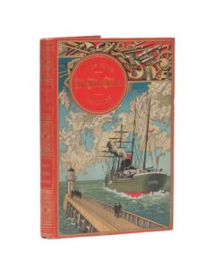 Sans dessus dessous par Jules Verne. Illustrations de George Roux. Paris, Bibliothèque d'Éducation et de Récréation, J. Hetzel et Cie, sd (ca 1900). Grand in-8° simple. Cartonnage éditeur polychrome «au steamer et à la pastille rouge». Ch. Magnier et ses Fils relieurs. Imprimerie Gauthier-Villars. Tranches dorées. Gardes bleu. Sept planches hors-texte en couleurs. Imprimerie Gauthier-Villars. Petite décoloration au second plat. Sinon, superbe exemplaire ! Très rare dans cette condition.
