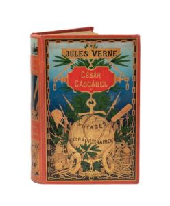 César Cascabel par Jules Verne. Illustrations de Georges Roux. Paris, Bibliothèque d'Éducation et de Récréation, J. Hetzel Éditeur, sd (ca 1900). Grand in-8° double. Cartonnage éditeur polychrome «au globe doré» du 3e type. Engel Relieur. Tranches dorées. Gardes bleu. Douze planches hors-texte en couleurs et deux cartes. Imprimerie Gauthier-Villars. Bel exemplaire.
