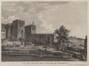 MARSEILLE Ensemble de 8 estampes encadrées : Vue de l'église de Saint Victor de Marseille. Née. …