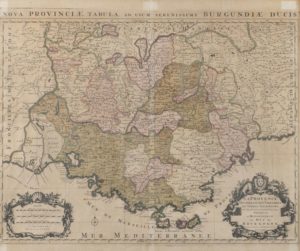 SANSON Le gouvernement général de Provence divisée en ses vigueries et terres adjacentes. S.L., Jaillot, 1692, contours coloriés. Encadrée sous plexi mod. 63 x 93,5 cm. Insolée, pliure et taches. ON JOINT : JAILLOT. La Provence divisée en ses vigueries et terres adjacentes. S.l. s.d. contours coloriés. Encadrée sous verre. 53,8 x 62,3 cm. Courte de marges, pliures, insolé, taches. Ens. de 2 pièces.