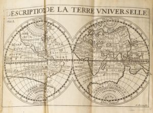 DU VAL La géographie universelle qui fait voir l'état présent des 4 parties du monde. Lyon, Jean Certe, 1688, in-12, 5 ff. - 741 pp. - 1 f.bl., vélin à recouvrement, un fil. à froid encadr. les plats, dos lisse, muet. Avec 7 cartes. Suivi de : La connaissance et l'usage des globes et des cartes de géographie. Lyon, chez Jean Certe 1698.