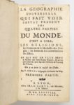 DU VAL La géographie universelle qui fait voir l'état présent des 4 parties du monde. Lyon, …