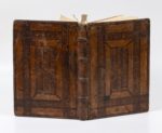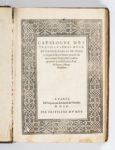 LE FERON (Jean) Catalogue des très illustres ducz et Connestables de France, depuis le roy Clotaire premier du nom, jusqu'es à très puissant, très magnanime et très victorieux roy de France, Henry Deuxième. Paris, de l'imprimerie Michel de Vascosan, 1555, 6 livres rel. en un vol. in-4, 32 ff. - 20 ff. - 28 ff. - 16 ff. - 26 ff. - 18 ff, veau brun, large décor de compartiments à froid, dos à nerfs avec mq. PREMIERE EDITION complète des 6 livres. Avec de nombreux blasons dans le texte. Mq. le dernier feuillet blanc.