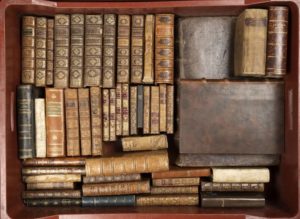 MANETTE de livres anciens en état usagé, sur différents sujets : Religion, Biblia sacra, etc..