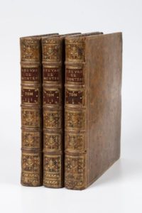 MONTESQUIEU OEuvres. Nouvelle édition revue, corrigée & considérablement augmentée. Amsterdam, Leipzig, Arkstée & Mekus, 1758, 3 vol. in-4, veau marbr., triple filets encadr. les plats, dos à nerfs, ornés, pièce de titre et de tomaison rouge. Avec 2 cartes. Qq. brunissures.