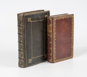 OFFICE (L') de la sainte vierge En latin et en françois. Paris, Josset, 1684, in-8, plein mar. noir, triple filets encadr. les plats, décor à la Du Seuil, dos à nerfs richement orné, tr. dor. Avec 4 planches. CLEMENT (l'abbé). Entretiens avec l'âme de dieu. Vienne, Trattner, 1763, in-8, mar. rouge, encadr. dor. sur les plats, dos lisse, orné, tr. dor. Ens. de 2 vol.