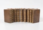 PLUCHE (Abbé) Le spectacle de la nature ou entretiens sur les particularités de l'histoire naturelle qui ont paru les plus propres à rendre les jeunes gens curieux, à leur former l'esprit. Nouvelle édition. Paris, Estienne, 1745 -1744 -1746 -1747-1755, 8 tomes en 9 vol. in-12, veau brun, dos à nerfs, ornés (rel. us.). Avec 9 frontispices et 200 planches hors-texte environ. Petite galerie de vers atteignant qq. pl. au tome IV.