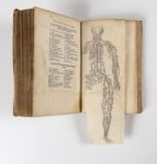 BARTHOLIN (Thomas) Anatomia, ex caspari Batholini parentis institutionibus. Omniumque recentiorum & propriis oserbationibus quartum ad sanguinis circulationem reformata. La Haye, Adran Vlacq, 1663, in-8, 7 ff. (sur 8) - 592 pp. - 8 ff., vélin sali (rel.de l'époque). Troisième édition illustrée d'un portrait et de 73 planches sur (74), 65 planches numérotées et une planche non numérotée et 8 planches dépliantes. Déchirures avec mq. aux pl. des p. 318 et 412. Rousseurs et galerie de vers aux pp. 87 à 125.