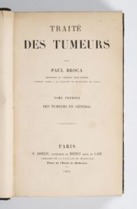 BROCA (Paul) Traité des tumeurs. Paris, Asselin, 1866-1869, 2 vol. in-8, demi-rel. bas. bleue, dos lisse, ornés (rel.de l'époque). EDITION ORIGINALE.