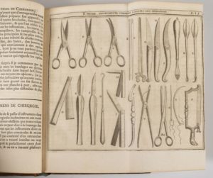 DIONIS (P.) Cours d'opérations de chirurgie démontrées au Jardin royal. Quatrième édition. Paris, Houry,1740, 2 vol. in-8, veau marbr., dos à nerfs, ornés (mouillures sur les plats). Avec une gravure à double page du Jardin royal, un portrait de Petrus Dionis et 15 planches hors-texte. Rousseurs, taches et mouillures au vol. 2 atteignant un peu la pl.6.