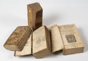DU LAURENS (André) Discours de la conservation de la vie : des maladies mélancoliques, des catharres & de la vieillesse. A Rouen, Louis Loudet, 1630, in-16, (8) - 204 ff., vélin marbr. us. Erreur de pagination. La première édition fut imprimée à tours en 1594. PIGRAT (M.P.). Epitome des préceptes de médecine et chirurgie contenant plusieurs enseignements & remèdes nécessaires aux maladies du corps humain. Lyon, Estienne Bechelly, 1652, in-12, plein parchemin (rel. salie). Rousseurs. VIGIER. La grande chirurgie des ulcères. Lyon, Huguetan, 1614, in-16, 23 ff. - 563 pp.- 16 ff. - 75 pp., in-16, demi-rel. bas. marron (rel. grossièrement rest. et us.). Mq. de papier à la p.75 atteignant un peu le texte. LA FRAMBOISIERE (Nicolas-Abraham de). Canonum medicinalium libri tres quibus aphoristica methodus medendi affectibus corporis partium suivi de Consultationum medicialium. Parisiis, apud Michaelem Sonnium, 1595, in-16, 12 ff. - 196 pp.- 4 ff. - 6 ff. - 171 pp. - 3 ff., demi-rel. bas. marron (rel. grossièrement rest. et us.). EDITION ORIGINALE de ces deux traités de médecine générale. Cachet du Dr. Revillout sur le titre. Ens. de 4 vol.